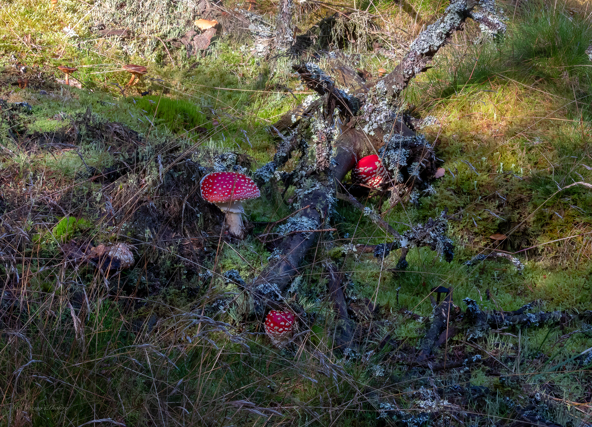 Back up to the track and onwards. There's a secluded patch, behind some trees where I discovered a little village of Fly Agaric last year and lo and behold, it had re-appeared.